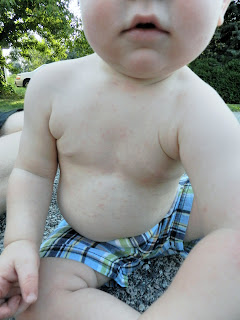He wasn't the most pleasant kid on the plane but we made till landing before any real outbursts. I consider that a success! Although Colin has never been the best sleeper we knew something must have been up. We continued giving him pain meds on a regular basis when we got to Mimi and Pappy's. The first night there was horrendous. Again, the poor little thing just could not get comfortable. I held him for most of the night. The next morning when changing his diaper I noticed he had a rash all over his chest which then spread to his face and neck. I was already prepared for this as this can also happen after the MMR vaccine although only to 5% of kids. Our poor Colin had the measles! No wonder he was SO uncomfortable. We spent most of the day cuddled watching tv followed by another long night.